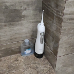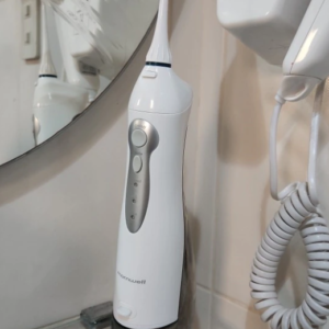Our irrigator includes three nozzles for regular cleaning and a tongue scraper.