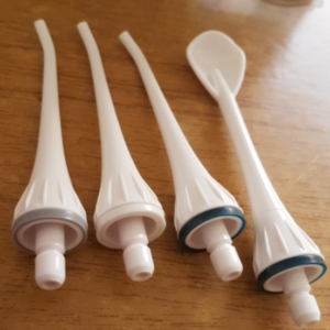 Our irrigator includes three nozzles for regular cleaning and a tongue scraper.