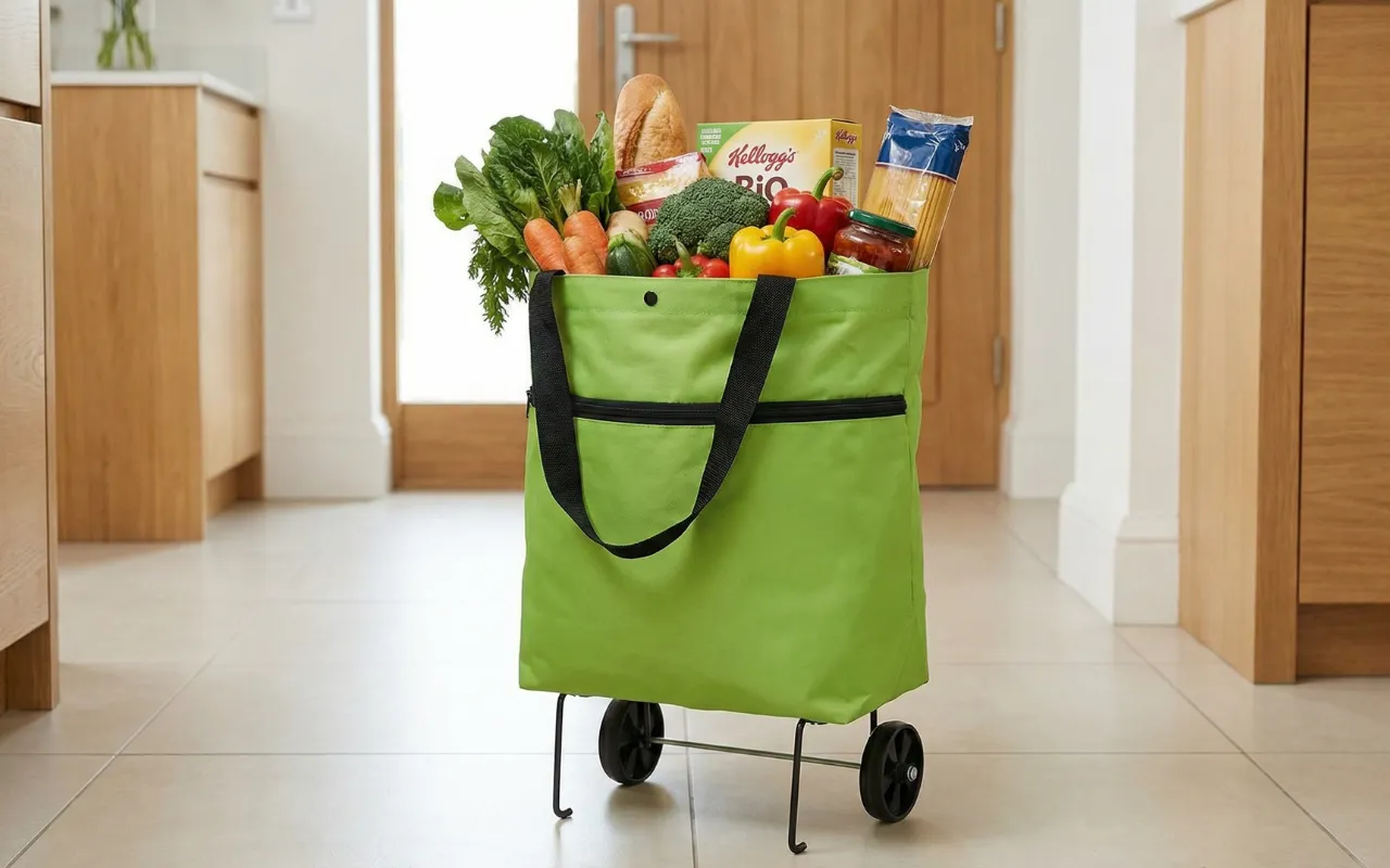 I bought this trolley after my grandson worried about me carrying bags. Now I roll everything home smoothly, even over kerbs. It tucks flat next to the shoe rack.