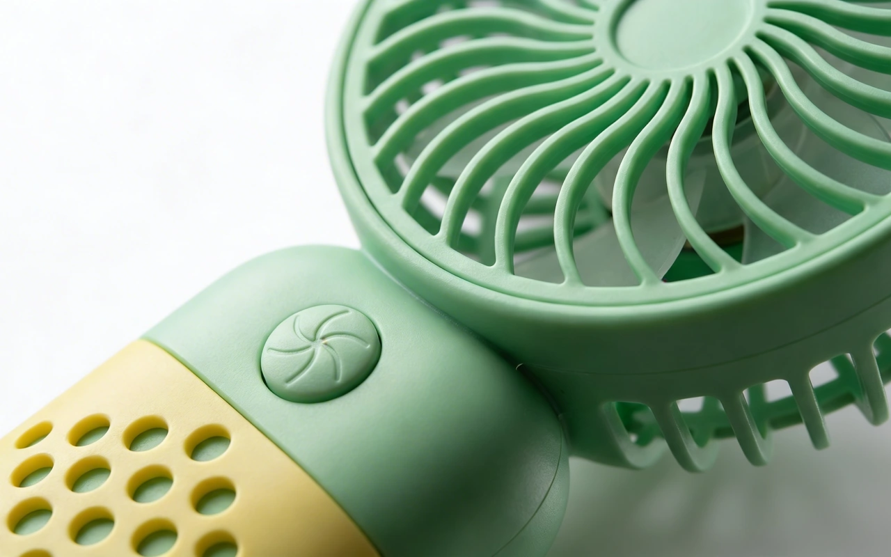 I keep this little fan on my desk and in my bag. One button, strong breeze, and the bright color makes it easy to find in my backpack.
