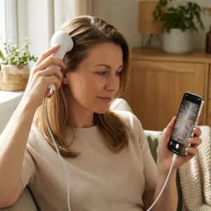 This scalp microscope clearly reveals every tiny detail of strands and skin. Using it, you can identify dryness, oil buildup, or follicle issues.