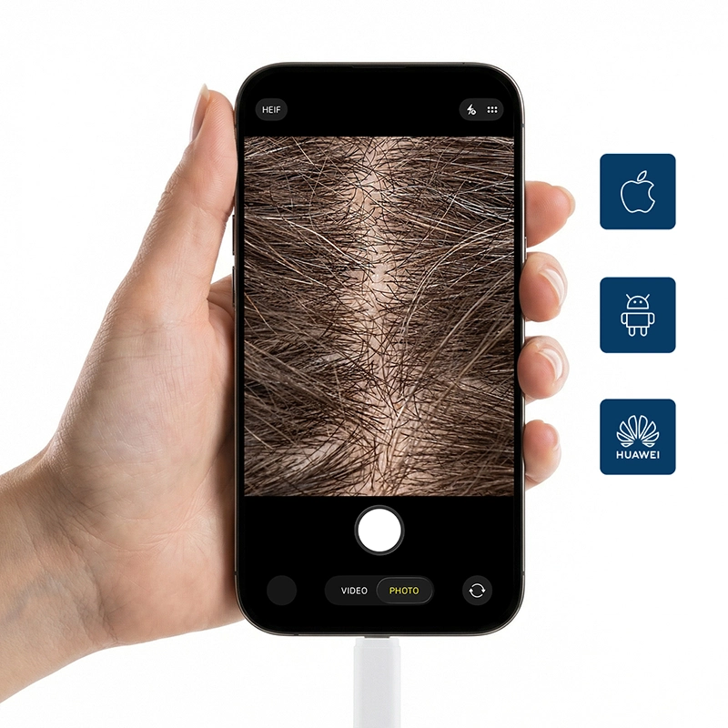 The Ortorex hair camera allows you to see the skin up close without distortion. You can spot hidden problems quickly and easily.
