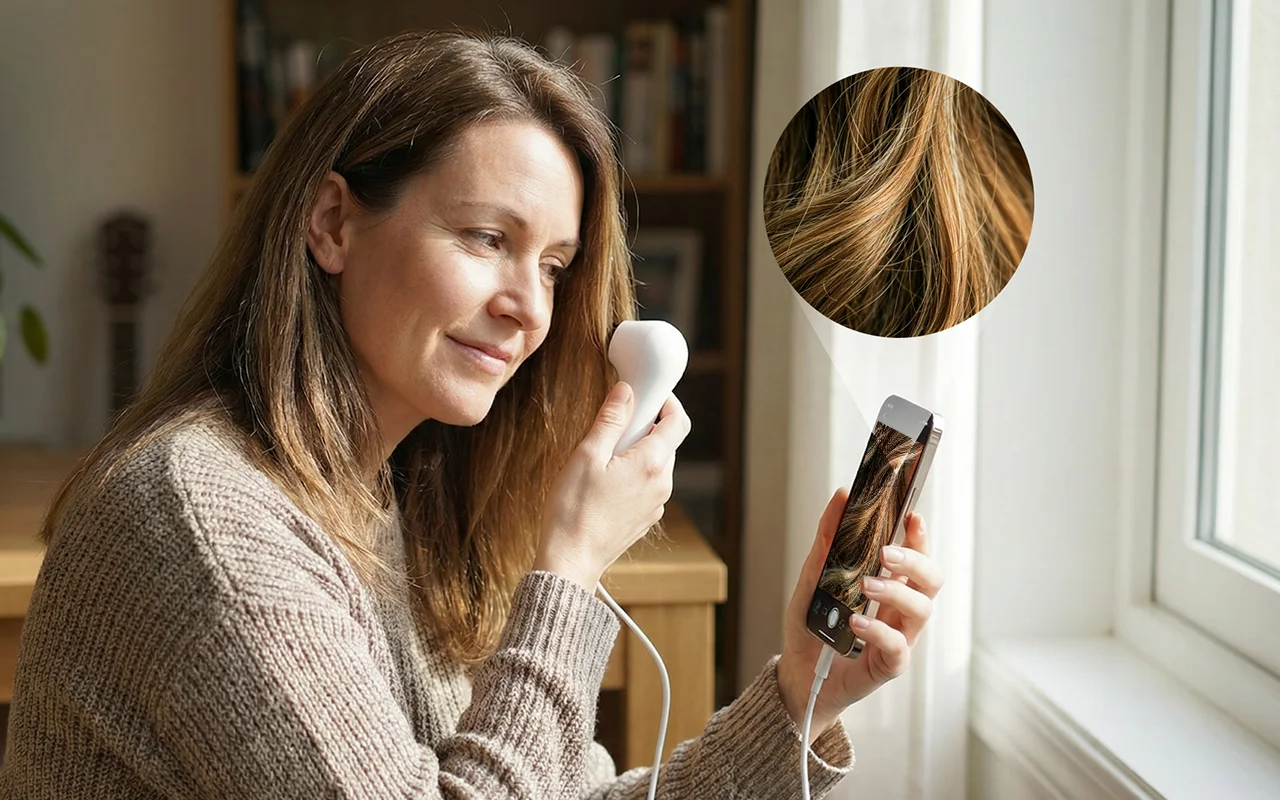 This scalp microscope clearly reveals every tiny detail of strands and skin. Using it, you can identify dryness, oil buildup, or follicle issues.