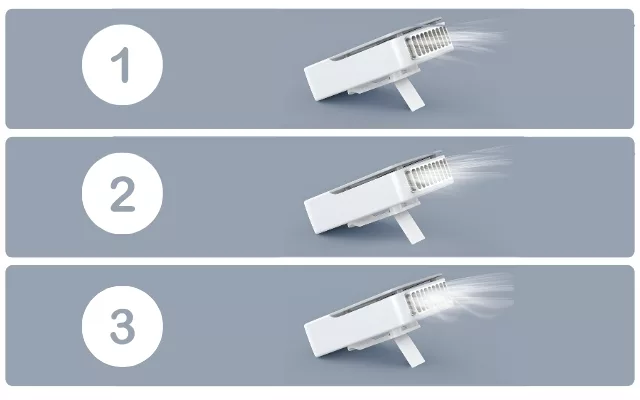 The advanced turbine motor delivers a strong breeze in seconds. Three settings let you adjust airflow for any situation.