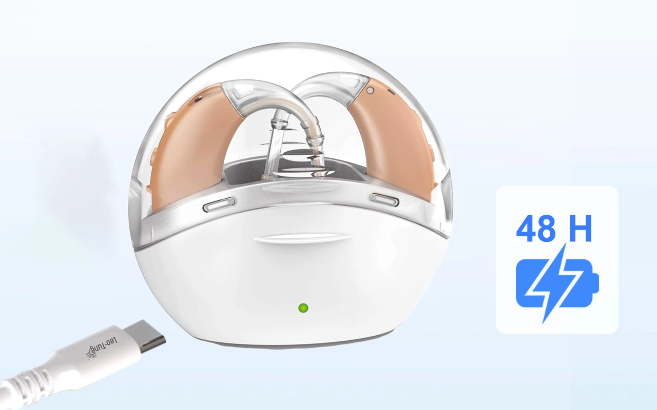 Adjust volume using one switch, no confusing steps required. Wear Ortorex aids confidently without needing help from others.