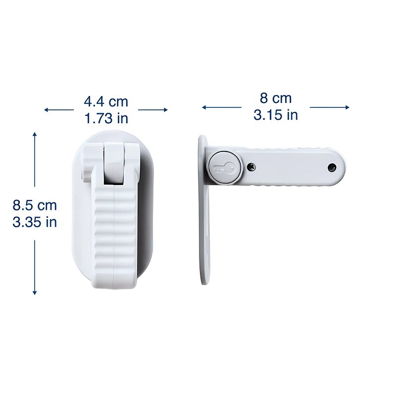 This lock is super handy! Super sticky, totally secure, and comes off with zero mess. Gives me lots of confidence with my little guy around.