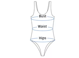 - 2. Wrap the measuring tape around the thinnest part of your waist, the fullest part of your bust and hips.
