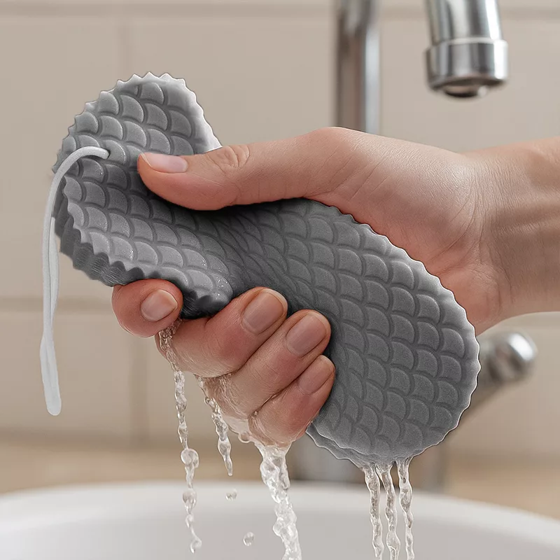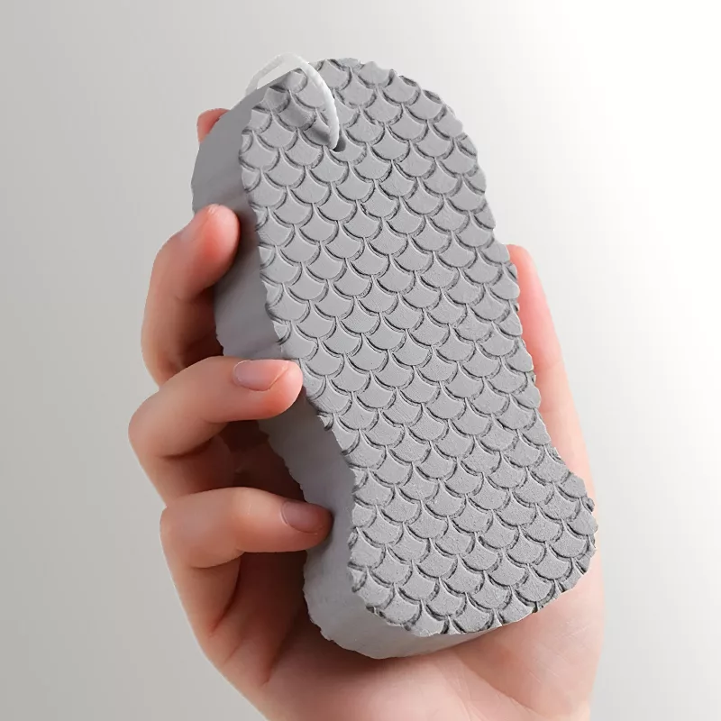 My skin always feels super smooth after using this wash sponge. Holding it is easy, even for my grandma. Doesn’t tear up easily.