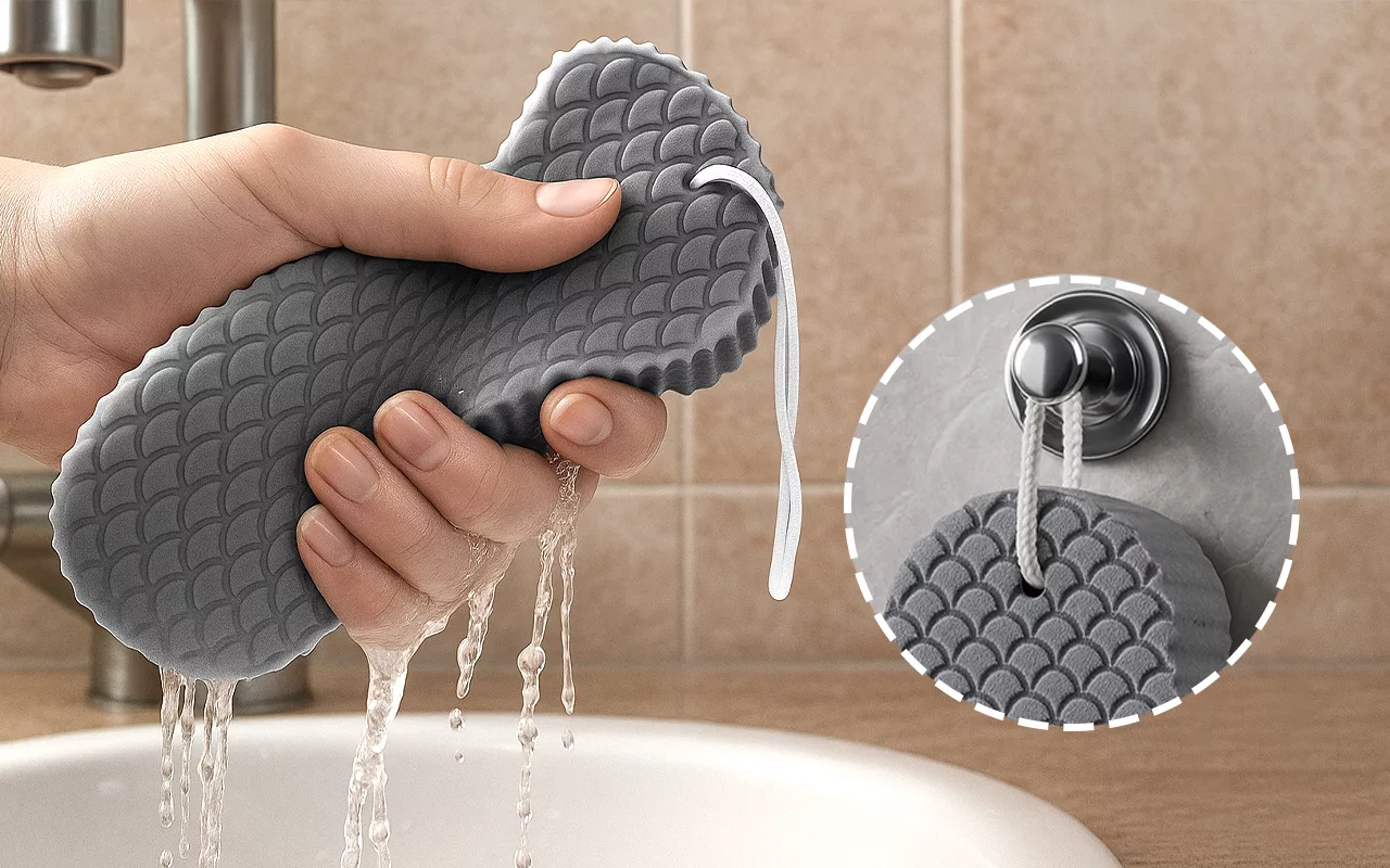 Really helps get rid of dry flakes on my back. The sponge feels squishy but does the job. I’m impressed at how fast it dries.