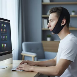 Wearing this chin mask every morning makes my skin look firm and the material doesn’t bother me at all. I noticed a real difference pretty quickly.
