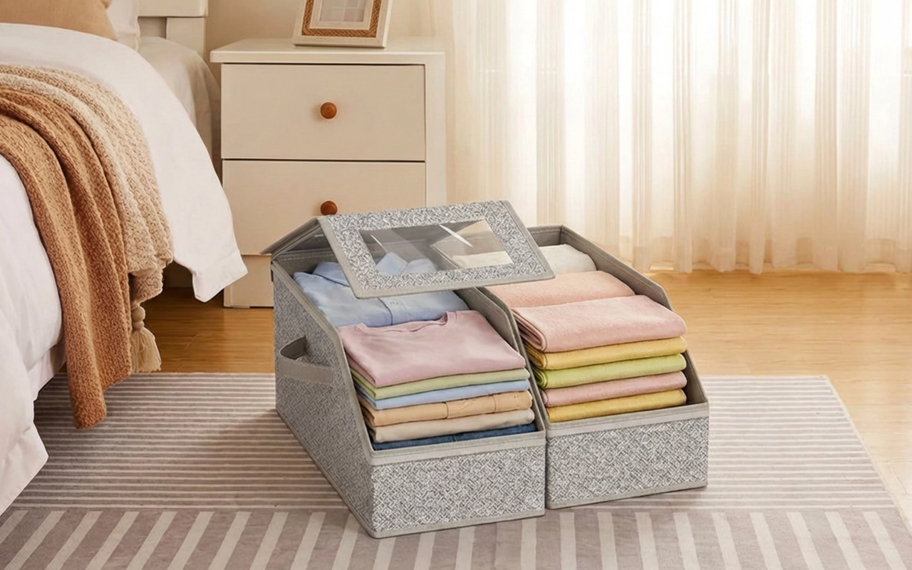 I got a few of these organizers for my bedroom, and now my closet looks way neater. The clear window helps me grab the shirts I want in seconds.
