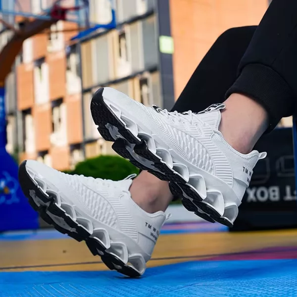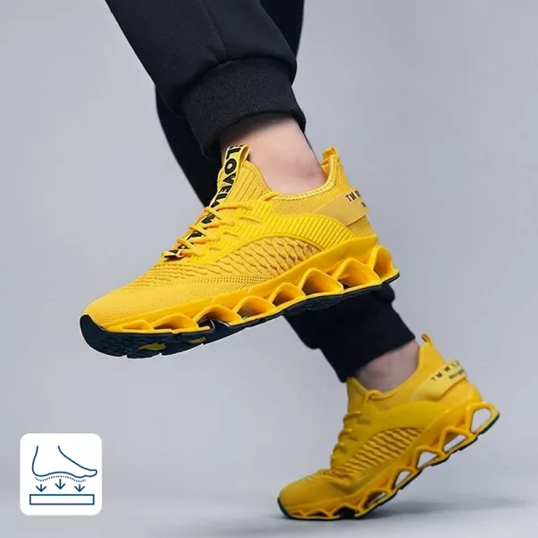 These mesh runners are stylish and practical. The air cushion gives a springy step, and I never get blisters anymore.