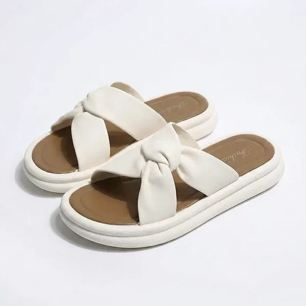 Bought these sandals for weekend errands and beach walks. They slip on fast, cushion my heels nicely, and the cute knot detail makes outfits feel a bit dressier.