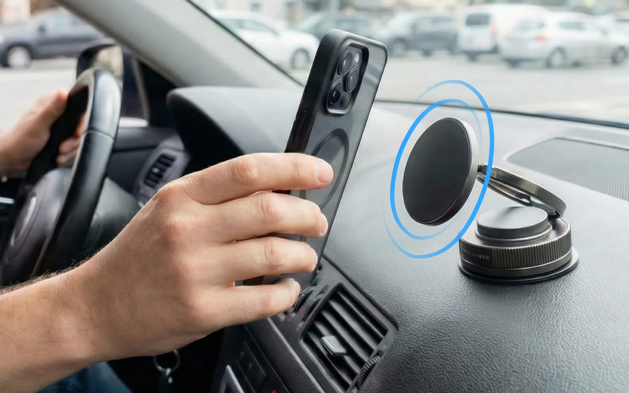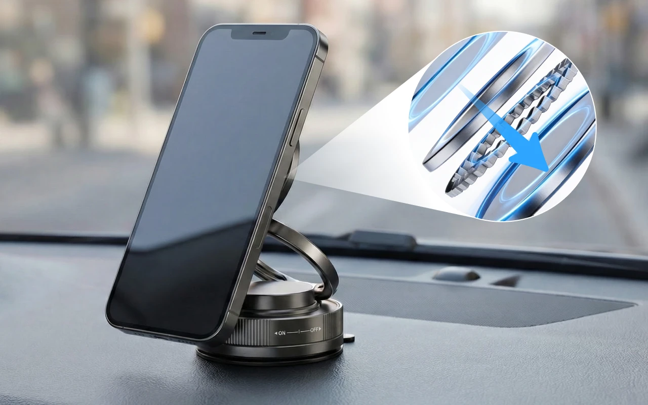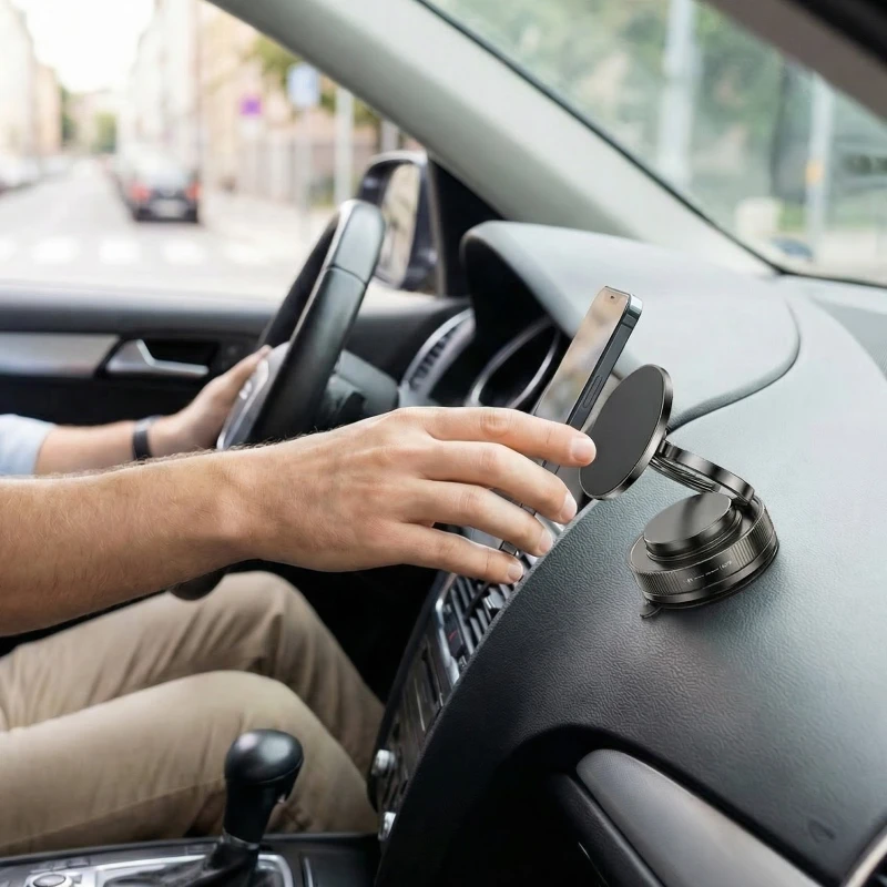 I rely on this magnetic stand every time I’m driving. My phone stays put, even when hitting potholes, and turning it for maps is super quick.