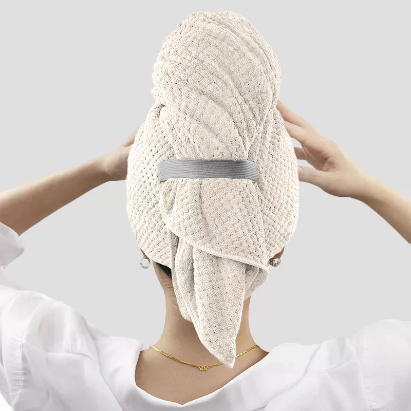This towel dries my thick hair in minutes. It never feels heavy, even when it’s wet. The elastic band is such a good idea, I always use it.