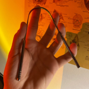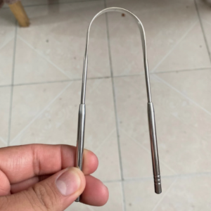 Our tongue scraper is made of stainless steel, is non-toxic, sterilizable, and much more durable than plastic ones. It will not rust or collect mold. Due to its stainless steel material, this tongue scraper removes toxins and prevents bacteria from growing on the scraper itself. The ORTOREX™ Tongue Scraper has two non-synthetic handles for good grip and an anti-gagging ridge for back-of-the-mouth cleaning. With a flexible but sturdy and smooth curve, it can easily reach the back of the tongue and effectively clean it.