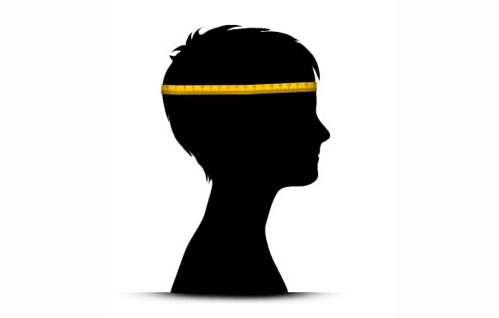- 1. Wrap the measuring tape around the widest part of the head, just above the eyebrows and ears.