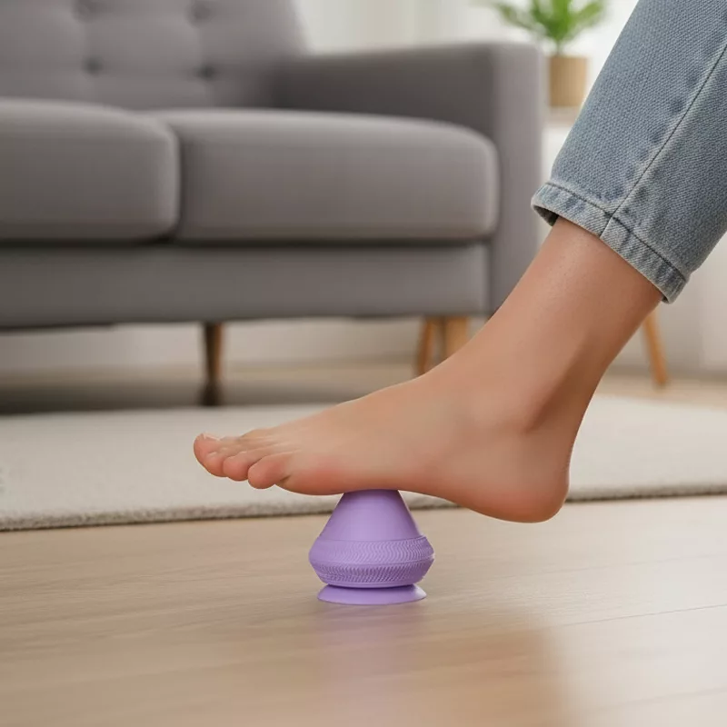The suction cup secures the device to flat surfaces. Enjoy a revitalising foot massage while standing or sitting comfortably.