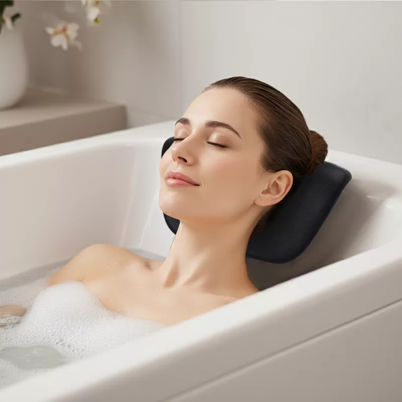 This headrest is just what I needed. I can finally soak without worrying about wet hair or slipping. It stays in place every time I use it.