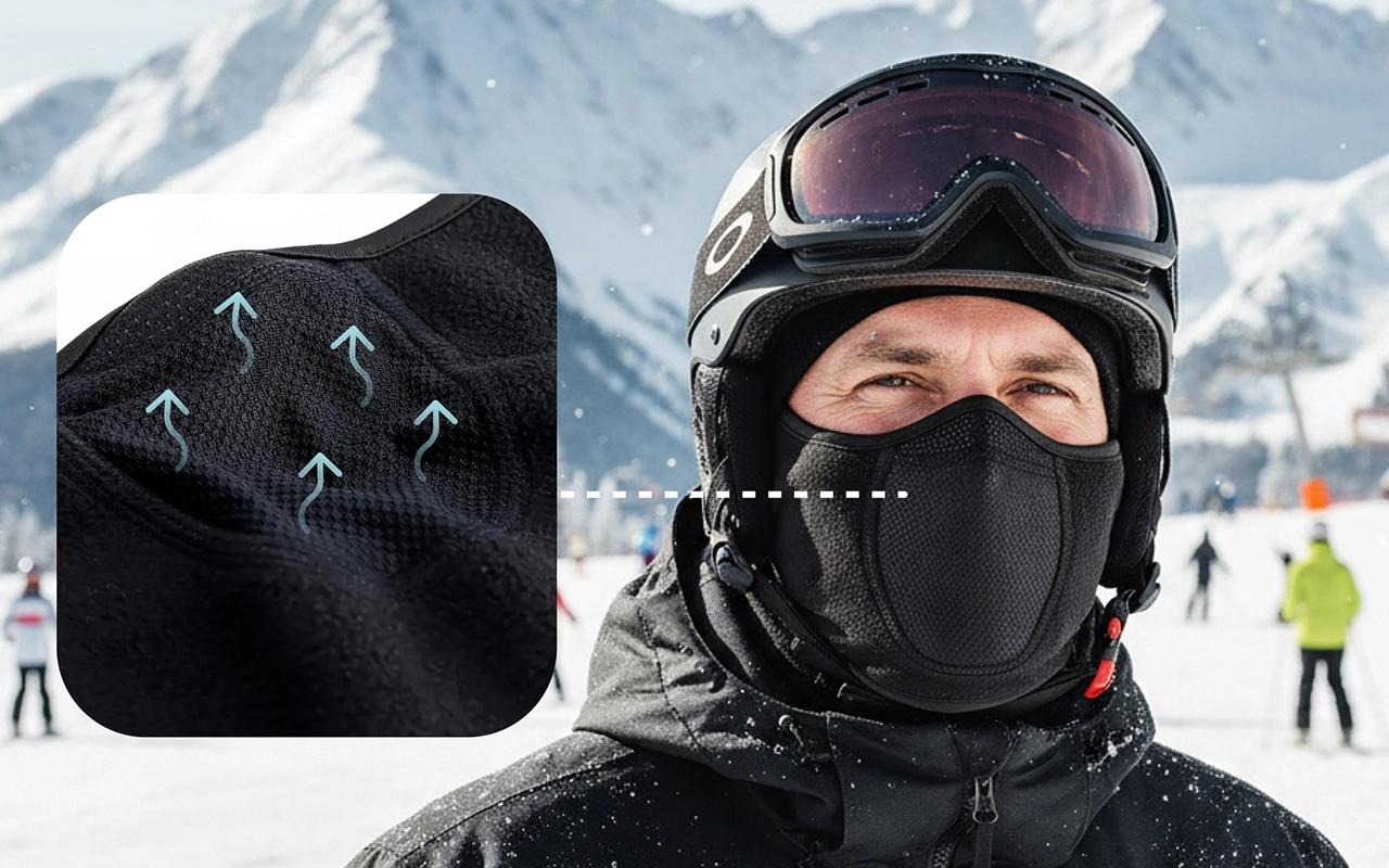 Polar fleece material traps heat and blocks chilly gusts. Your face and ears stay protected year-round.