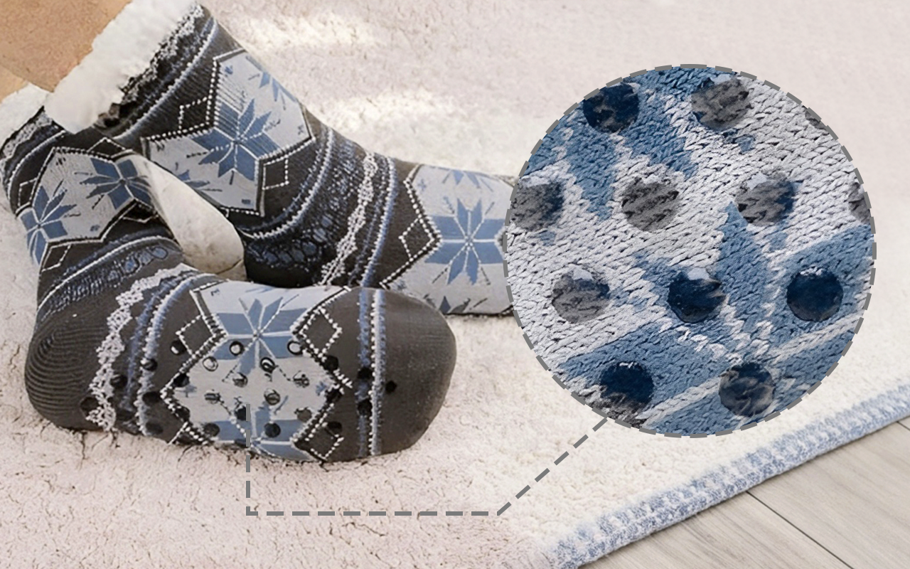 Silicone dots stop unwanted slips on any smooth surface. Move around confidently on wood or tile floors at home.