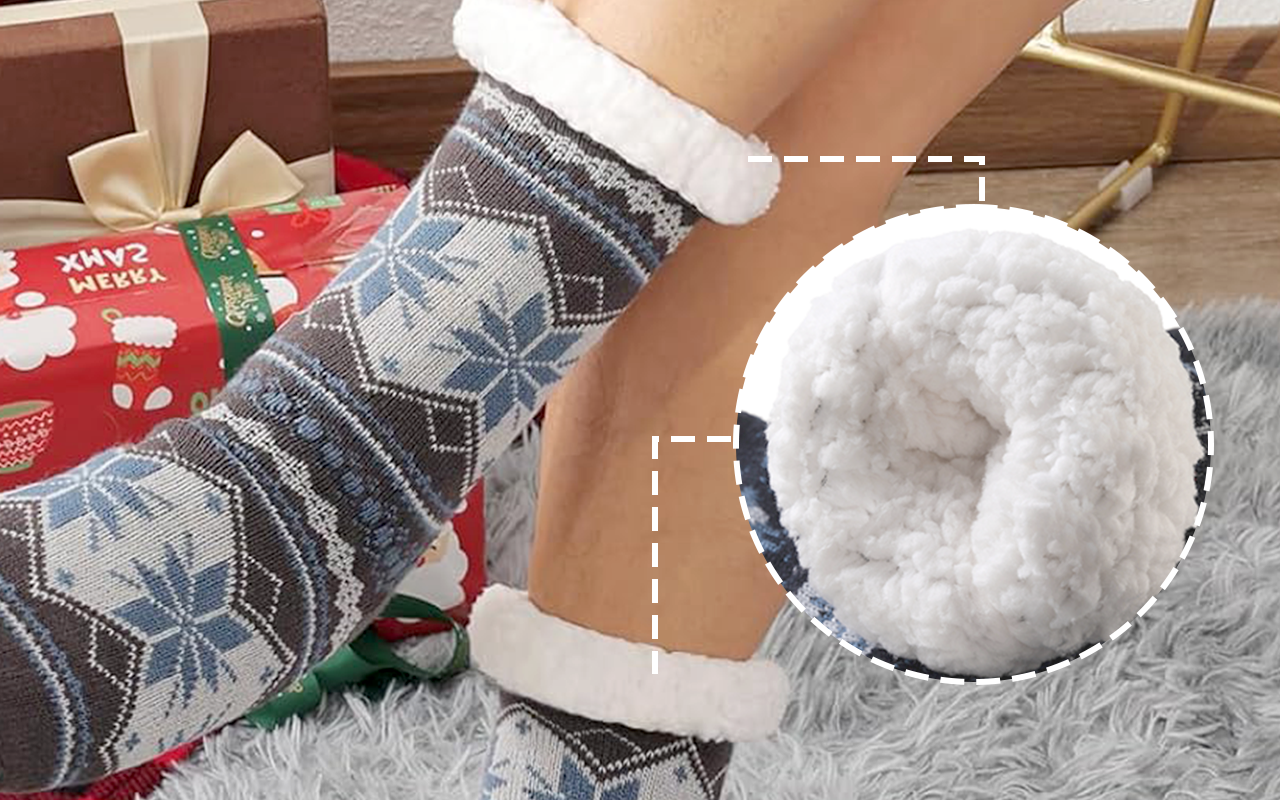 These fluffy socks keep my feet so toasty, even on the coldest nights! I love walking on the tile floor without slipping everywhere. Super cozy!