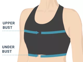 - 3. To measure your upper bust, wrap the measuring tape around your torso, just under your armpits and over the top of your bust.
