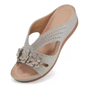 The Ortorex wedge slippers feature delicate floral details that exude elegance. They are easy to pair with dresses, shorts, or jeans.
