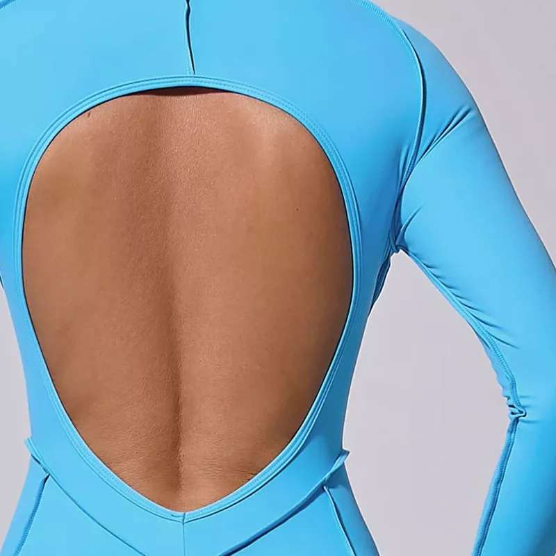 Wearing this suit is so comfy during my yoga and cardio. My curves look great, love the open back and smooth seams. No chafing at all!