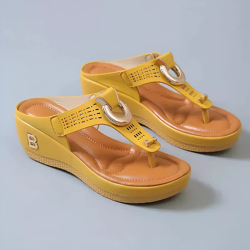 Our sandals offer excellent support and will make you look taller. Their wedge sole minimises pressure on the feet, preventing fatigue during all-day wear.