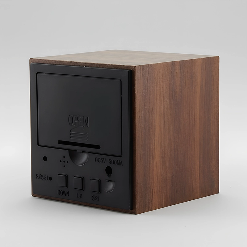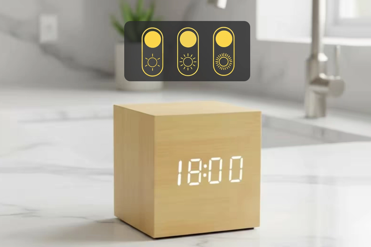I really like the soft display—I can read the time even in the dark without hurting my eyes. The wood vibes make my room cozy.
