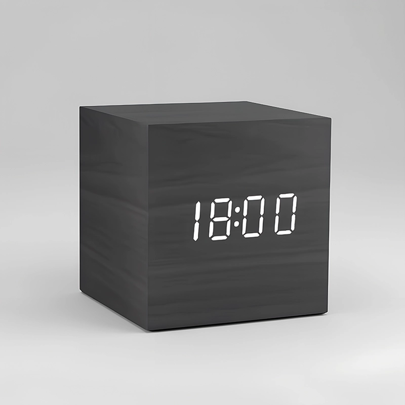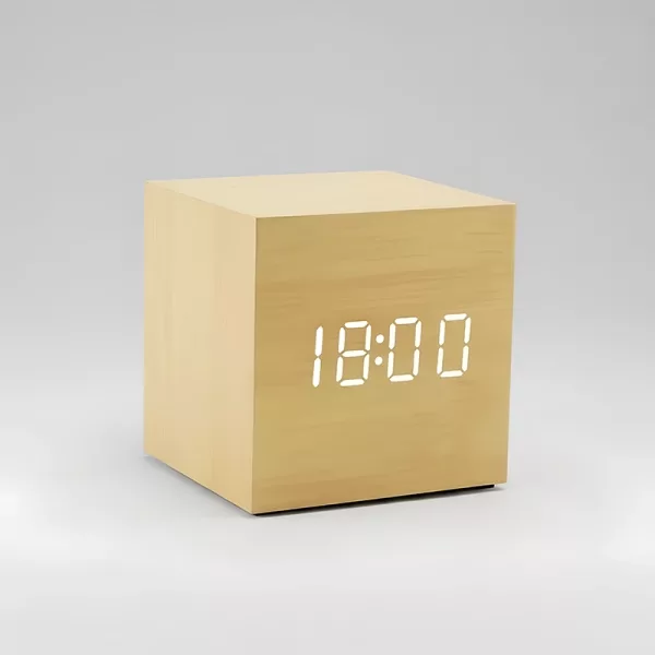 The cube clock looks awesome on my bedside table. I love waking up to three alarms and checking the temperature every morning. Super easy to use too!