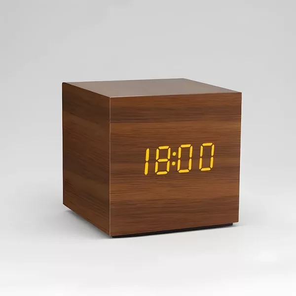 The wood cube feels nice and modern. I keep checking the temperature so I can pick what to wear. Works really well!