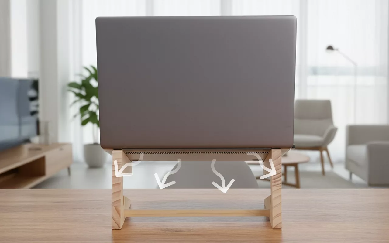 The Ortorex laptop holder allows air to flow freely underneath, keeping the device cool. This prevents overheating and performance drops, thereby helping to extend the computer's life.