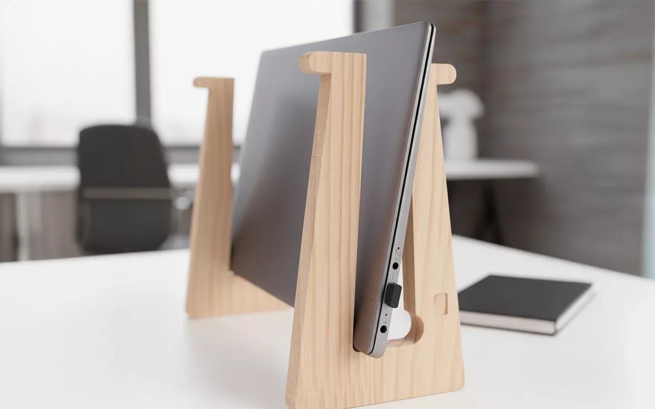 Our wooden holder is compatible with most laptop sizes and keyboard types.