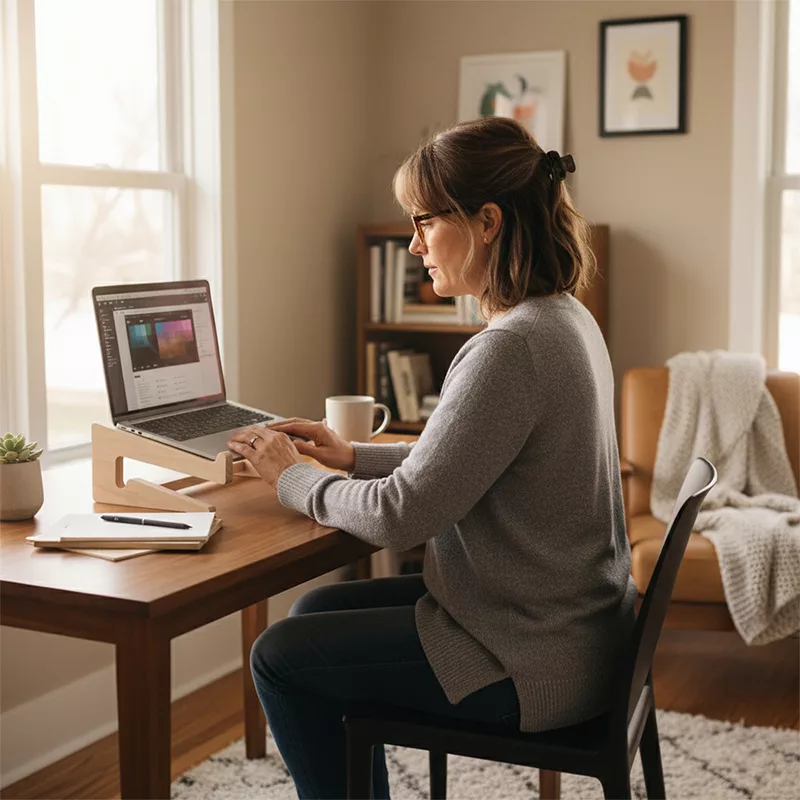 The Orotrex wooden stand blends seamlessly with modern or classic decor. It lifts your laptop to improve visibility and reduce neck strain.