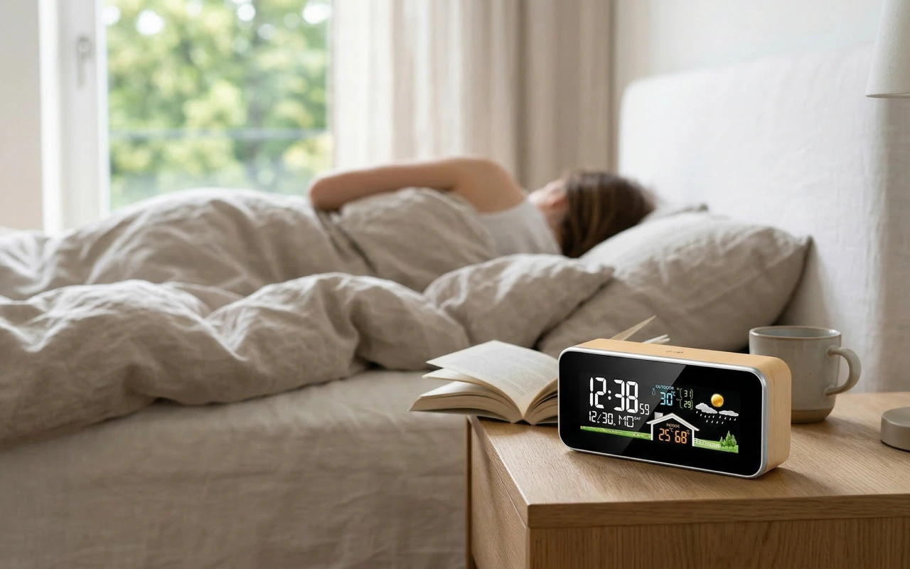 Experience peace of mind by knowing your room’s exact conditions. Ortorex Weather Station makes it easy to see temperature and humidity at a glance. Bright display helps you read the time or forecast without getting up. Elegant wooden style fits beautifully into any modern living space.