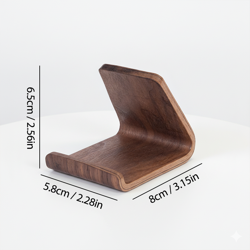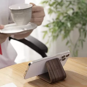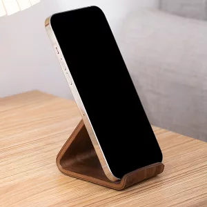 Love this stand! Keeps my phone upright while I work, so checking messages is super easy. The wood finish matches my room decor perfectly.