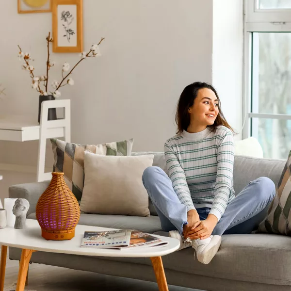 This diffuser really helps me sleep better. I put lavender oil in and the mist is so gentle. Also love how it brightens up my bedroom.